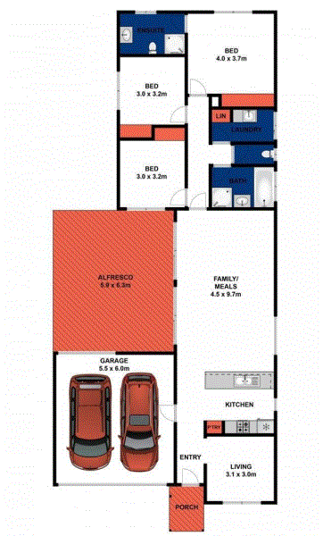 The home features three bedrooms, all with built in robes, and master with ensuite. The remaining bedrooms share a main bathroom with bath and shower. There is a small living area/study at the front of the home and the large open plan living and kitchen area open with North facing glass sliding doors onto the spectacular outdoor entertaining area.