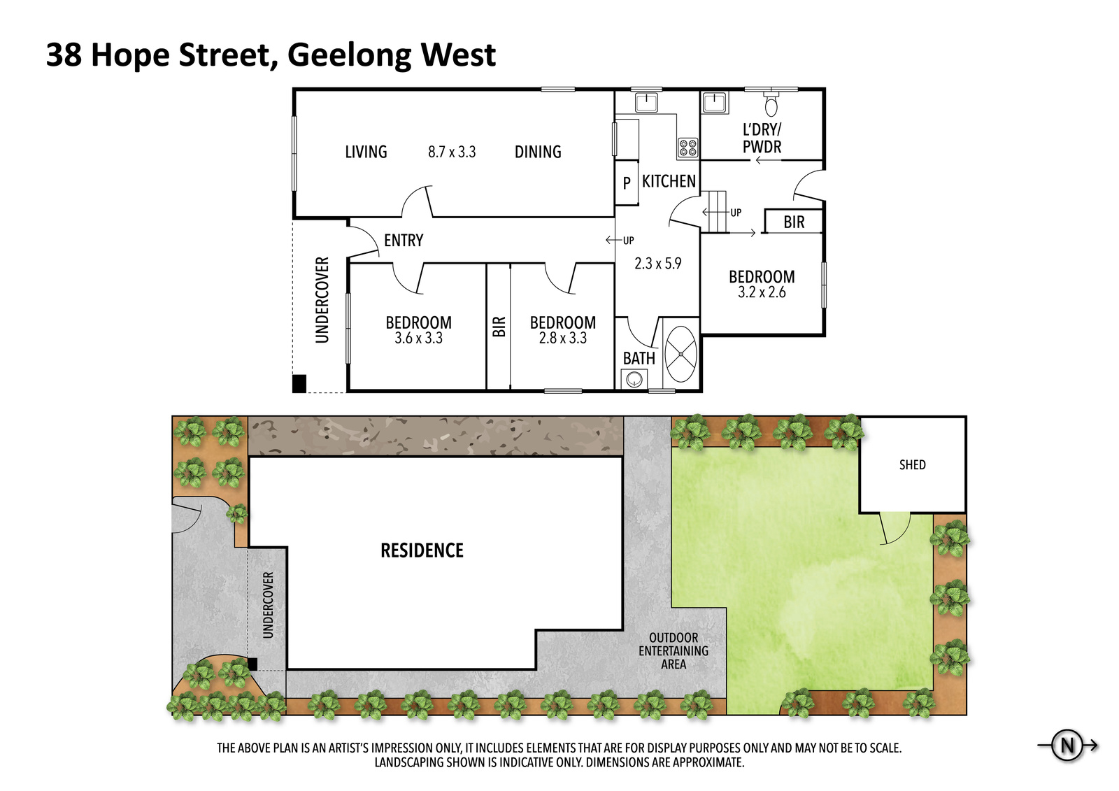 • Private and undercover front porch space, rear entertaining patio too