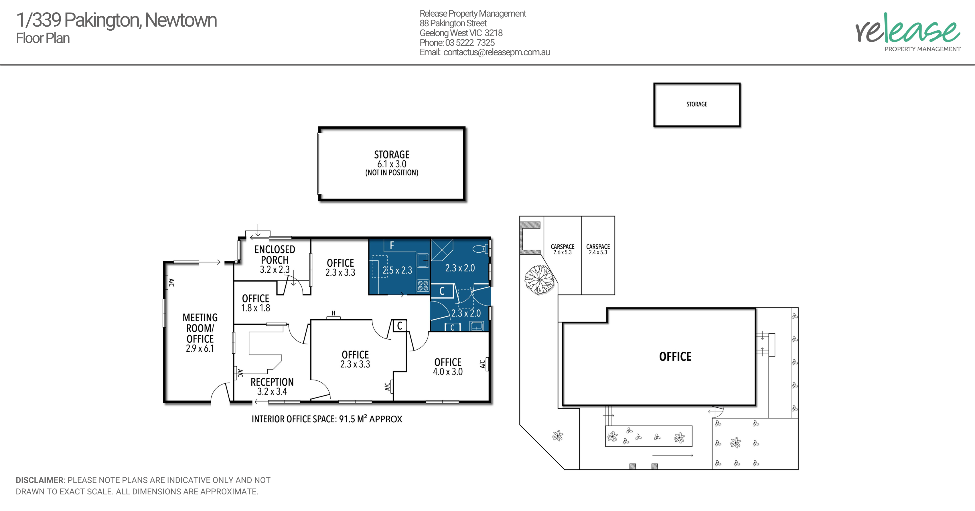 Position your business within the heart of Newtown, surrounding by the thriving Pakington Street popular café’s and retail shops. Current office fit out consists of Reception, 4 offices, 1 large meeting / board room, kitchen / tearoom and amenities. Low maintenance court yard, rear porch which leads out to 2 x off street carparks. Additional storage unit (6.1 x 3 meters) – ideal for additional storage requirements.