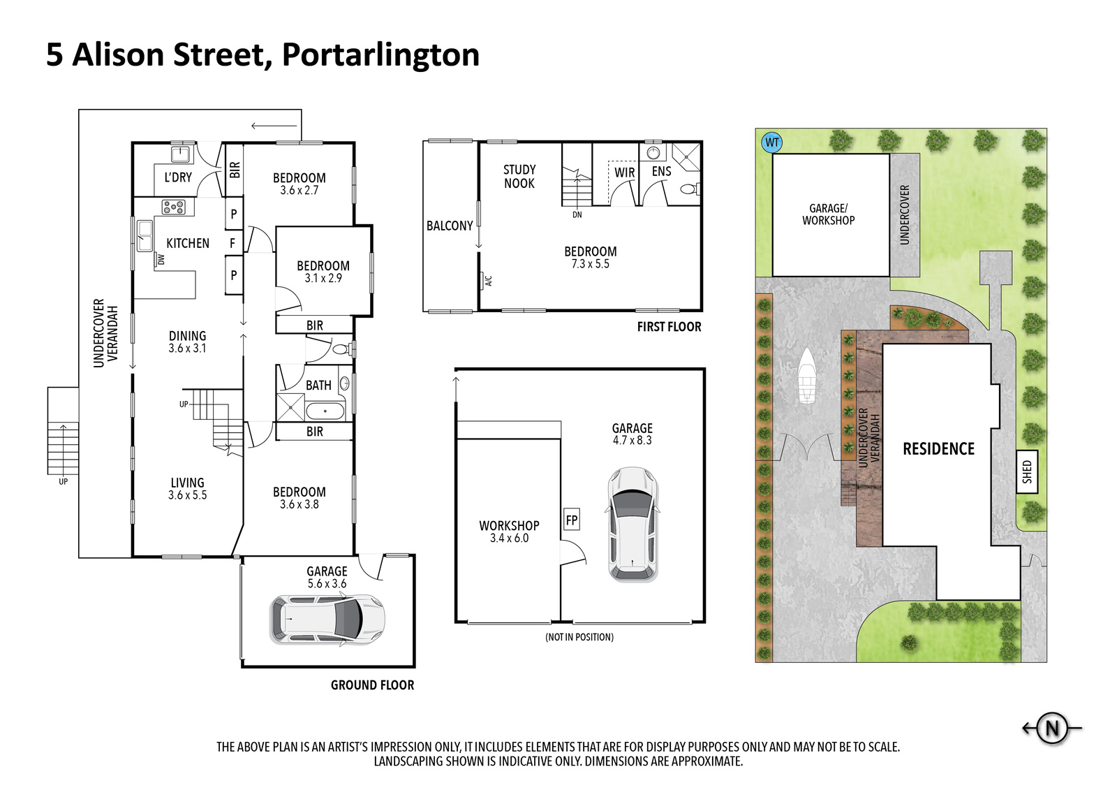 • A further garage at front of house with more off-street parking for a growing family. Other features include: ducted heating and refrigerated cooling, new Stegbar windows, full workshop with wood heater, security shutters on north and west facing windows, new storm water plumbing.
